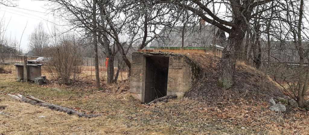 На углу боковой улицы заметили погреб-землянку, коих много в Осиповичском районе. Задерживаться и лишний раз беспокоить жителей не стали. Решили направляться к выходу из деревни. Сказывалась и усталость, и моросящий дождик, от которого хотелось укрыться за ветрозащитой с костром.