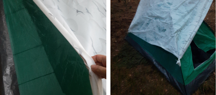 Около 19:00 прибыли в Межное. Выражаем огромную благодарность таксисту за доставку к месту по бездорожью. Пожалуй, если бы не таксист, но ночевали бы уже экстремально. Лагерь поставили недалеко от Бортного, ставя палатку и ветрозащиту уже в сумерках. Последствия этого ощутили уже утром: поставленная вплотную ветрозащита обеспечила сильный конденсат на боковой стенке палатки, хотя остальные три и проветривались. Предполагая, что предвидится дождь, сместили палатку и переделали ветрозащиту.