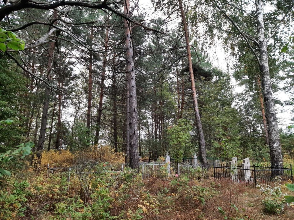 Кладбище представляет собой порядка десяти могил, окруженных очень старыми соснами, порослями шиповника и бурьяна. На некоторых могилах надписей нет, другие — с именами, цветами, лампадками и даже фотографиями. Встретился совсем ветхий деревянный крест, ограда без памятника или креста. Кладбище отчаянно нуждается в благоустройстве. Возникло необычное ощущение, что умершие предки «пережили» своих потомков. Кладбище есть, потомков — нет.
