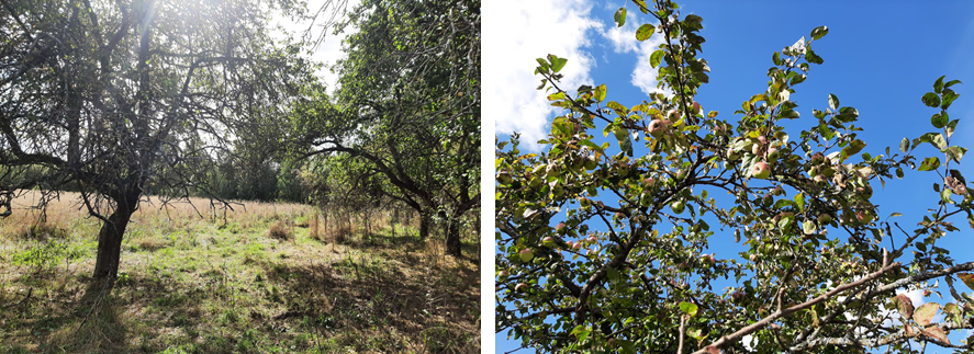 Еще одно горькое впечатление осталось от домовой ямы. Четкая на спутниковой карте, совпадающая с расположением постройки, она превратилась в фантастическую… свалку. Края ямы просматриваются хорошо, угадывается четкая прямоугольная форма. Однако обилие каких-то сенажных отходов, перемешанных с белым плотным полиэтиленов вызывает недоумение и массу негативных эмоций. В десятке метров от ямы сохранился сад, напоминающий колхозный. Деревья усыпаны яблоками. О наличии здесь хуторов напоминают осколки кирпичей.