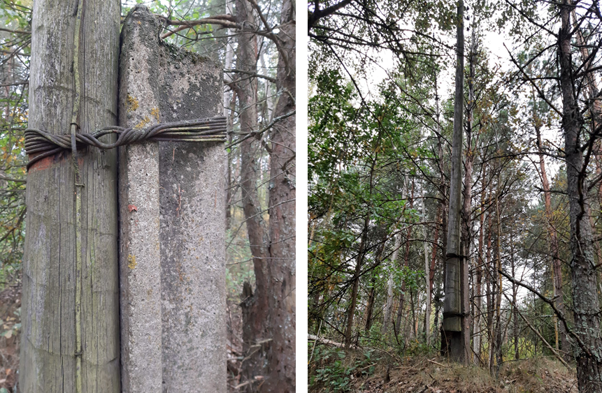 Обследовать местность у Межного пошли налегке, оставив снаряжение у колодца. Старое кладбище, едва различимое на карте, неожиданно оказалось в очень достойном состоянии. На подходе к нему был замечен столб электропередач с обрезанными проводами. Примечательно, что такой же по высоте столб есть в районе д. Лука у реки Птичь. Вероятно, именно там располагались жилые постройки.