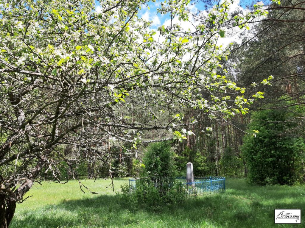 Памятник Белой располагается рядом с яблоней, которая будто продолжает белым цветением жизнь исчезнувшей деревни. Траву с могилы убирали вручную, возложили белые цветы, поставили GPS-метку на карте. Рядом с яблоней нашли два железобетонных столбика.