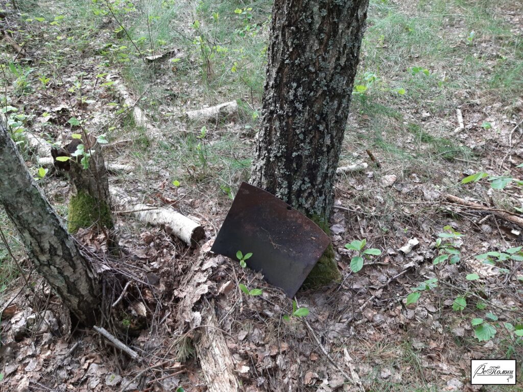 Обследование территории вокруг детской могилы позволило собрать несколько экспонатов для музея проекта. Некоторые найденные предметы (фрагмент металлического изделия и щит) оставлены на месте. Деревья, растущие на поле, будто разделили трагическую судьбу деревни: сломанные ветви, поврежденные стволы.