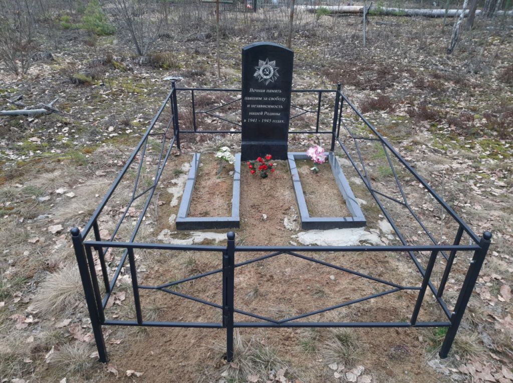 Кладбище оказалось небольшим. Провели съемку захоронений, на основании которой составили опись. Обратили внимание на наличие групповых захоронений одной семьи. Установили расположение воинского захоронения № 3303. Первичный поиск информации показал, что в паспорте опубликована устаревшая фотография. Среди могил встречаются и крайне ветхие. На земле замечено несколько деревянных крестов. К каким могилам они относятся, — уже неясно. Провели акцию по уборке и благоустройству воинского захоронения и одной могилы с деревянным крестом: убрали листья, возложили цветы.