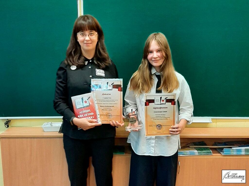 Делать первые шаги в любом деле всегда тяжело и волнительно. Отдавать свое творчество на суд жюри — волнительно вдвойне. Участие во Всероссийском конкурсе молодых поэтов на приз имени Бориса Богаткова стало не только доброй традицией поисково-этнографического проекта «ВсПомни», но и первыми творческими шагами его юной участницы Сивой Александры. В конкурсе этого года было представлено ее стихотворение о затерянном в лесу кресте (урочище Максимовка Осиповичского района Могилевской области). 9 ноября 2023 года состоялось торжественное вручение Александре памятного подарка и сертификата участника конкурса. 16 ноября 2023 года состоялось вручение памятной статуэтки и диплома за I место в номинации «Будто был я вчера на войне…» автору проекта Бобровской И.И.