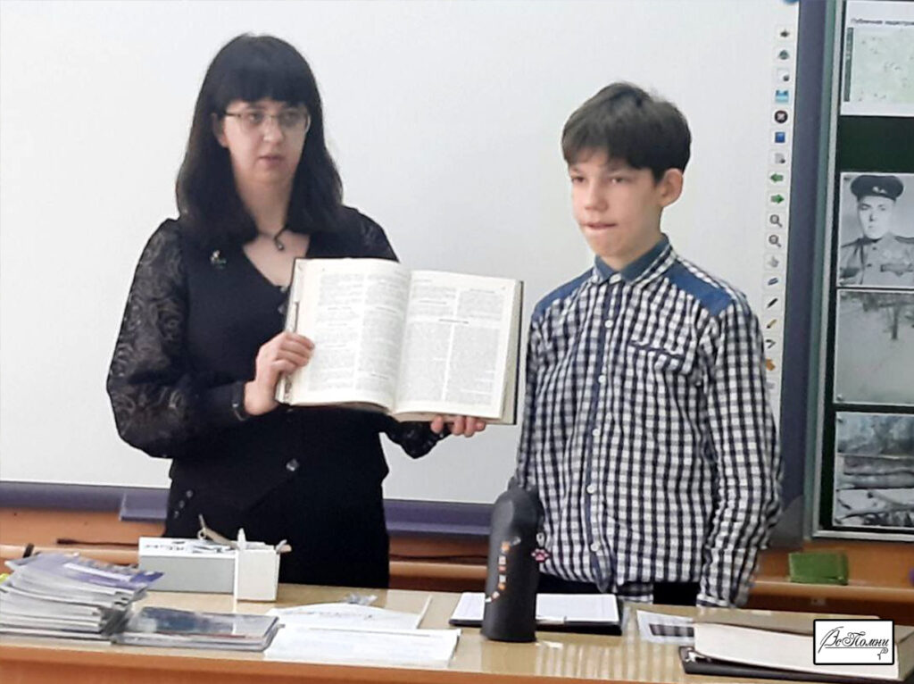 Завершением урока Памяти стало прочтение авторского стихотворения руководителем проекта «ВсПомни» Бобровской И.И., посвященного родителям сожженных в Белой шестилетней Валюши, четырехлетнего Толика и трехлетнего Кости.