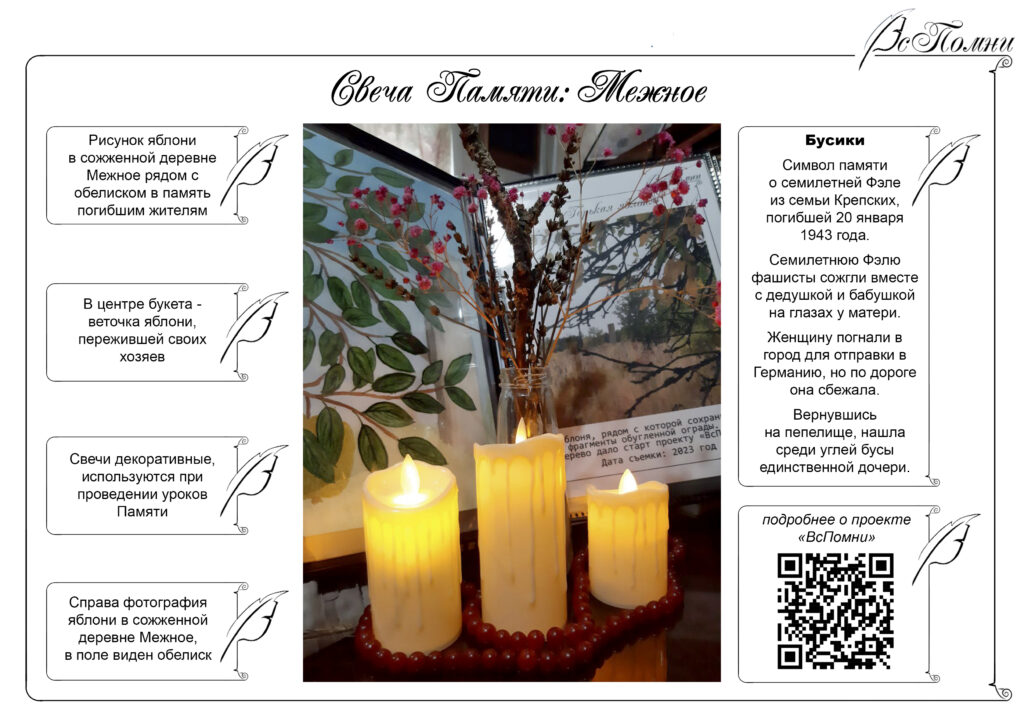 «Забытые истории» поисково-этнографического проекта «ВсПомни», как правило, малозаметны и малоизвестны, что делает участие в фотоконкурсах затруднительным: зритель не всегда может осознать историю символов на снимке без дополнительных пояснений. На X Международный конкурс «Гордость страны» в номинацию «Свеча памяти» была направлена фотография, посвященная Памяти погибших жителей Межного и истории семьи Крепских. Творческую работу участница проекта «ВсПомни» Кирлица Дарья сопроводила краткими пояснениями, сделавшими снимок более информативным. По итогам конкурса Дарья награждена Дипломом лауреата I степени.