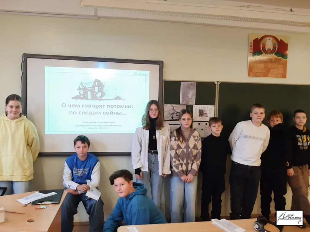 На следующий день после встречи с правнуком Адольфа Коятановича Живицкого состоялся урок Памяти «О чем говорят потомки: по следам войны…». Участники мероприятия попробовали прочитать запись о рождении Болеслава Живицкого из книги Бобруйского католического костела, увидели фотографию свидетельства о рождении, предоставленную потомком.